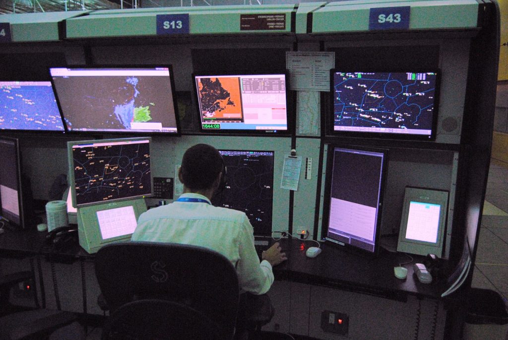 Toutes les données radar concernant les vols sont acheminées dans la salle de contrôle où se trouvent tous les contrôleurs couvrant le territoire de la FIR tel qu’indiqué sur la carte. C’est une grande pièce à l’éclairage tamisé où règne une ambiance feutrée obtenue par l’utilisation de matériaux qui absorbent le bruit. Puisque les contrôleurs échangent constamment avec les équipages des avions qu’ils suivent sur leurs écrans, il est essentiel d’avoir un environnement sonore calme afin de pouvoir bien entendre et surtout comprendre ce que disent les pilotes. Il en va de même pour la lumière tamisée qui permet aux contrôleurs de mieux voir et suivre chacun des points sur l’écran ainsi que les informations s’y rattachant.